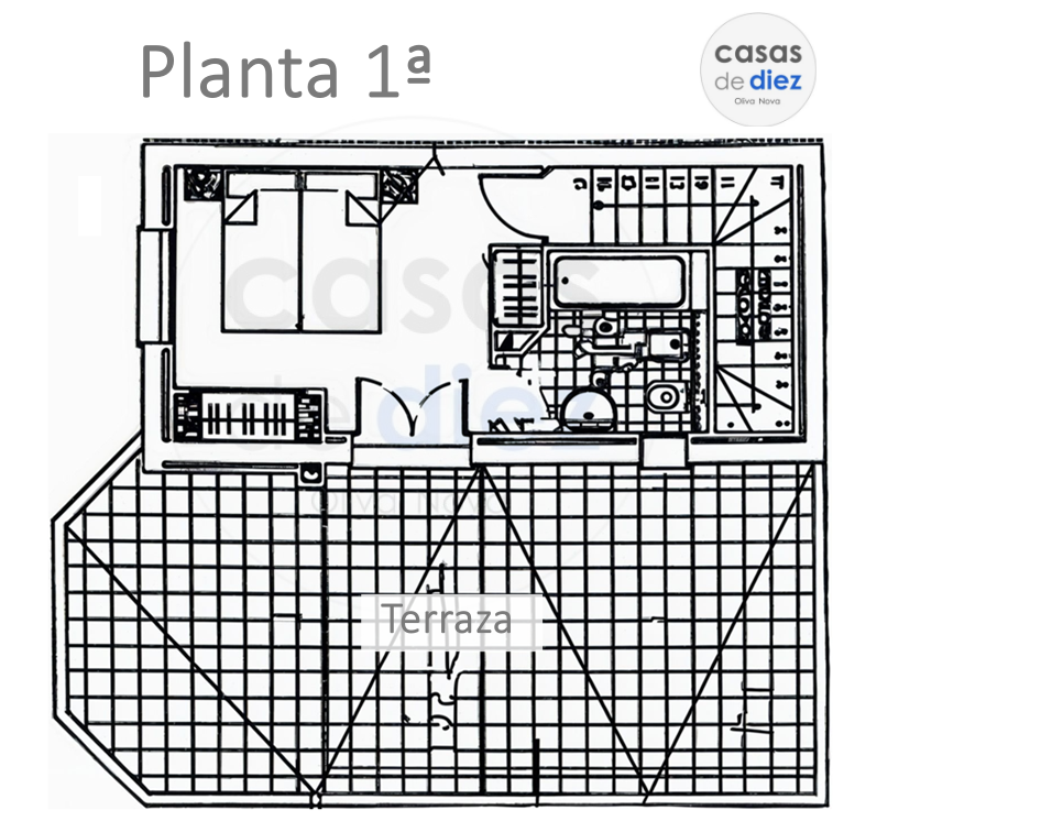 Planta primera con una superficie construida de 29 m2, distribuida en un dormitorio de matrimonio, un cuarto de baño con ducha y una terraza de 34 m2. La superficie de la parcela ocupada por la construcción es de setenta y cinco metros, once decímetros cuadrados.