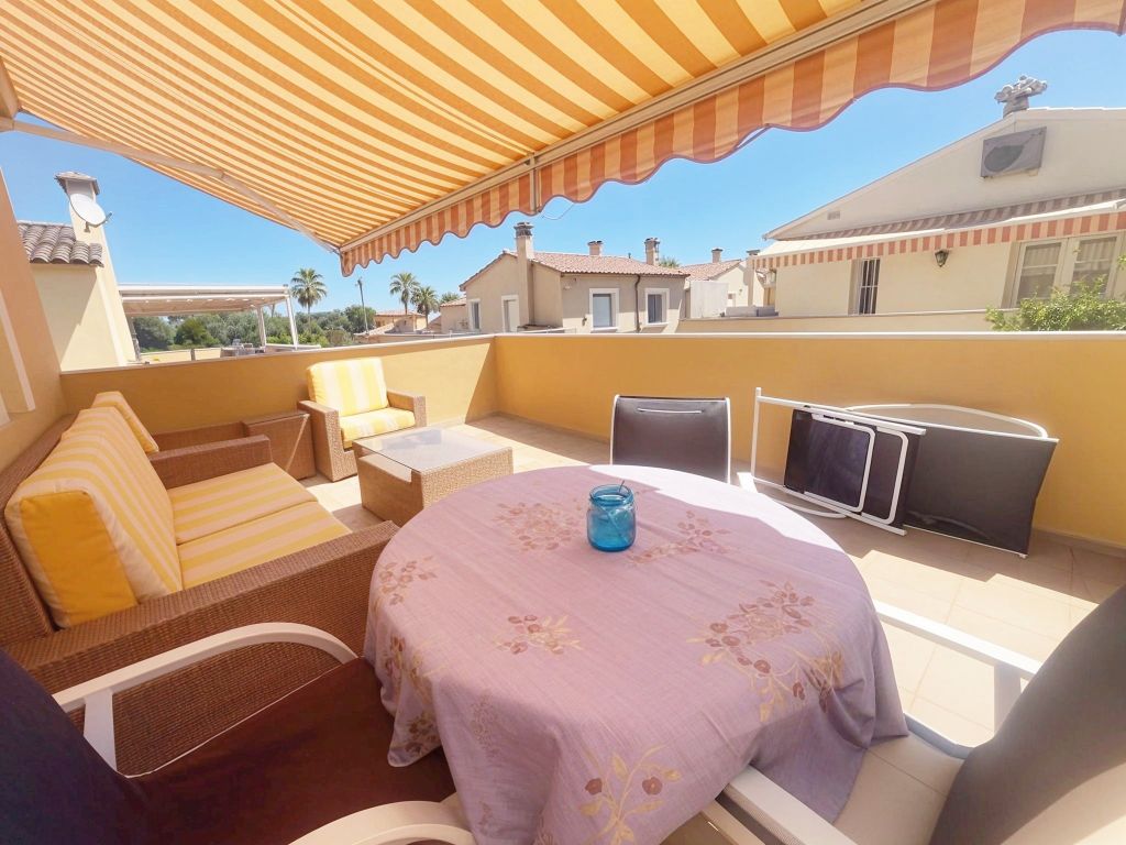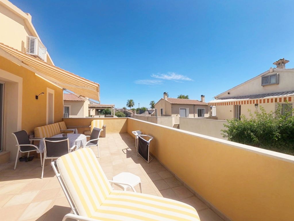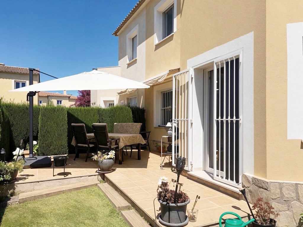 Casa adosada esquinera con jardín individual y terraza Modelo Cuenca. Tiene una superficie construida de 95 m2., Se encuentra en una parcela de su uso exclusivo que ocupa una superficie 141 m2. La superficie de la parcela ocupada por la construcción es 75 m2. Acceso por calle Murillo y avenida Matisse de Oliva Nova. Año 2002. Dos plantas. Buen estado.