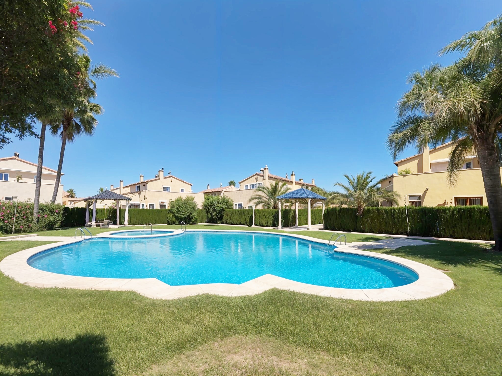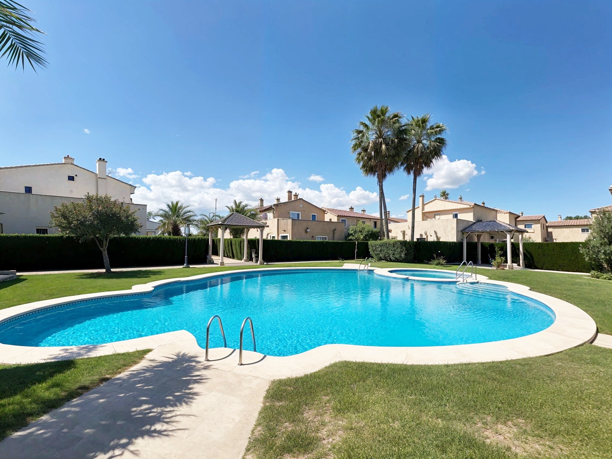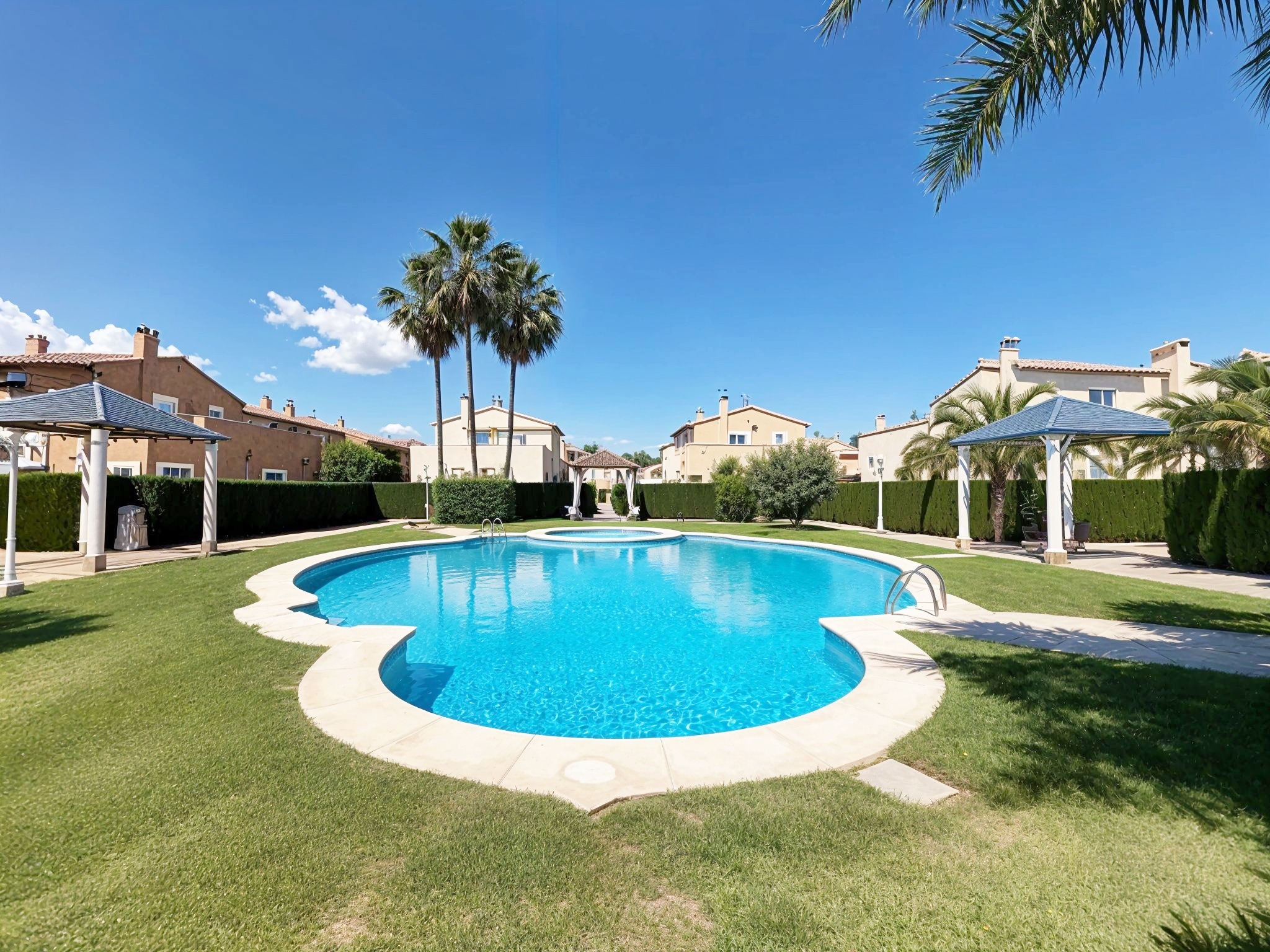 La propiedad incluye un aparcamiento exterior comunitario. La urbanización ofrece una piscina para adultos y otra para niños, rodeadas de hermosos jardines. Además, la valla que rodea todo el perímetro de la urbanización ofrece privacidad.