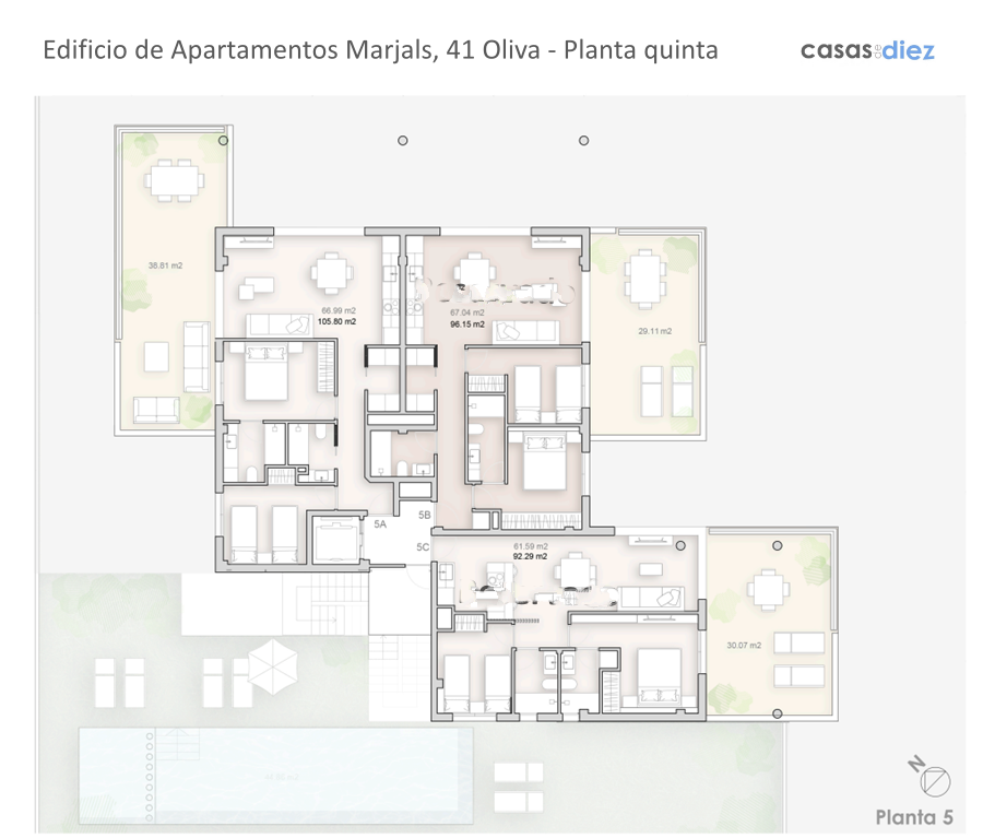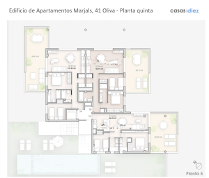 INSTALACIÓN ELÉCTRICA Las viviendas contarán con tomas de teléfono, TV terrestre, radio y TV satélite en salón y dormitorios. Instalación eléctrica completa para cocina. Equipadas con video portero y cuentan con preinstalación de carga para vehículos eléctricos según normativa vigente. Mecanismos eléctricos marca Btcino o similar, de diseño y color antracita, con posibilidad de domotizar elementos. 8 PISCINAS Las tres piscinas privadas de la cubierta, crean un espacio irrepetible donde disfrutar de unas excelentes vistas panorámicas desde la comodidad de tu vivienda. La iluminación de las piscinas, a través de los vidrios laminados, permiten conseguir una apariencia exterior de fachada única en el litoral valenciano. El edificio cuenta con una piscina comunitaria en planta baja envuelta por una amplia superficie ajardinada donde poder disfrutar de la tranquilidad de la zona.