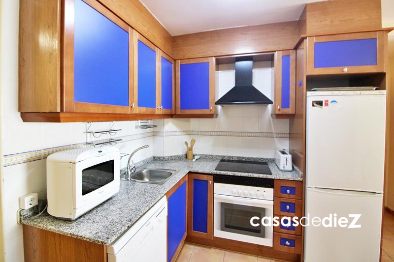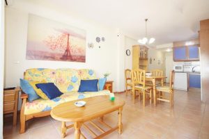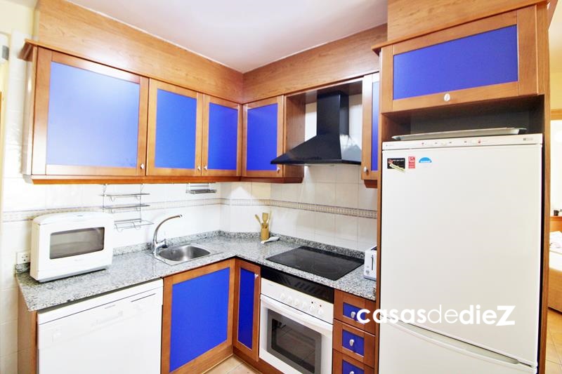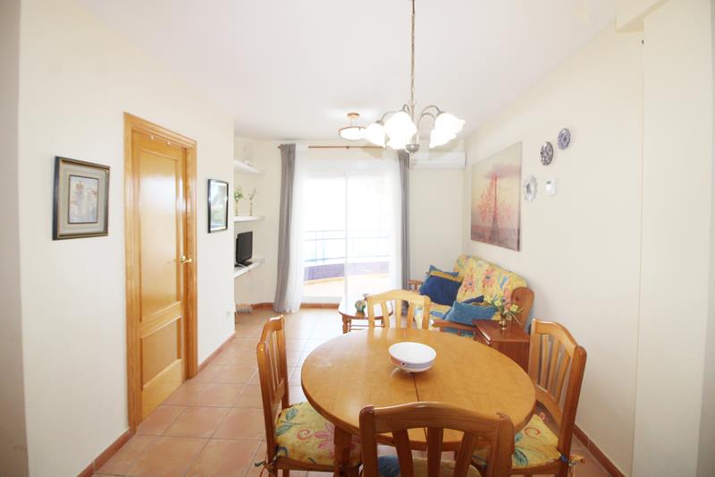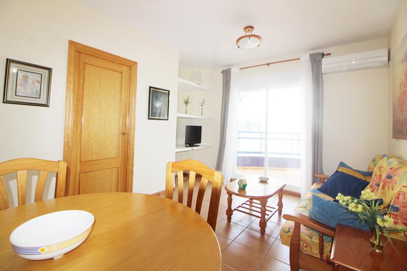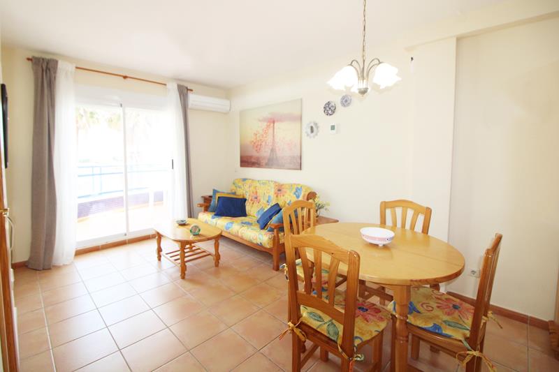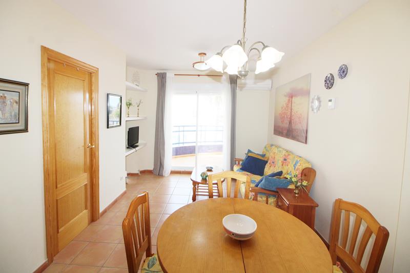 Salón con salida a la terraza, zona de comedor, cocina abierta totalmente equipada (frigorífico, lavavajillas, horno, microondas, vitrocerámica, etc., Dormitorio principal dos camas unidas y baño con bañera, dormitorio con cama nido para dos personas y un segundo baños.Cuarto de lavadora con fregadero.