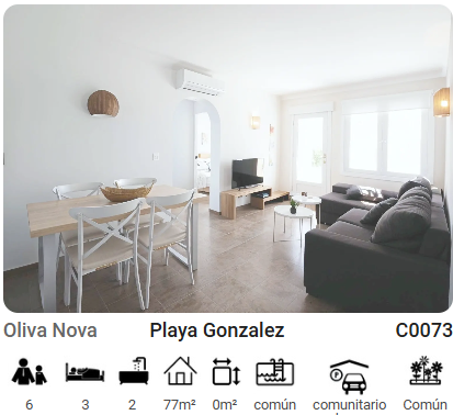 Disfruta de la serenidad costera en este hermoso apartamento adosado de una sola planta, ubicado en la prestigiosa calle Vermeer de Oliva Nova muy cerca de la playa y junto al MET, (Mediterranean Equestrian Tour). Residencial Club Sevilla VI. Con una superficie de 77 m2 construidos en el año 2005.