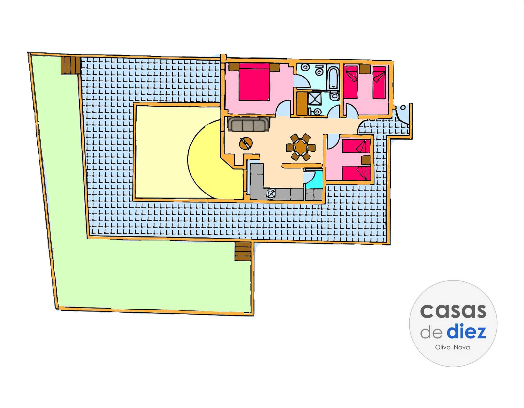 La casa se encuentra en la exclusiva urbanización de Oliva Nova, rodeada de un paisaje impresionante entre playa, montañas, naranjos y el azul del mar. Situada a 6 km. de la ciudad de Oliva, a 15 km. de Gandía y a 20 km. de Denia. Está perfectamente comunicada por la autopista AP7, el AVE en Valencia a unos 45 minutos y los aeropuertos de Alicante y Valencia.