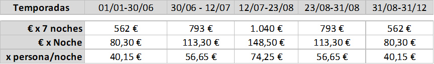 A partir del 1 de enero 2026 Estancias de 14 o más noches (5% descuento del 12/07 al 23/08. Resto temporadas 10%)