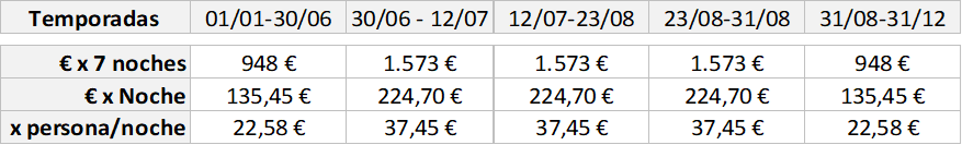 La fianza es el importe que se da para asegurar el cumplimiento de nuestra normativa y velar por el correcto cuidado del alojamiento. La fianza varía dependiendo del tipo de alojamiento. Oscilando entre 300 euros para los apartamentos y los 400 euros para las villas. Una vez hayas abandonado la vivienda y nuestro equipo supervise que todo está tal y como se encontraba a la entrada se devuelve el importe en un plazo de una semana.
