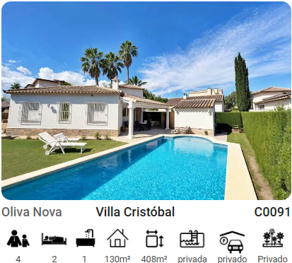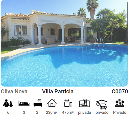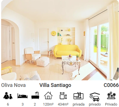 La casa se encuentra en la exclusiva urbanización de Oliva Nova, rodeada de un paisaje impresionante entre playa, montañas, naranjos y el azul del mar. Situada a 6 km. de la ciudad de Oliva, a 15 km. de Gandía y a 20 km. de Denia. Está perfectamente comunicada por la autopista AP7, el AVE en Valencia a unos 45 minutos y los aeropuertos de Alicante y Valencia.