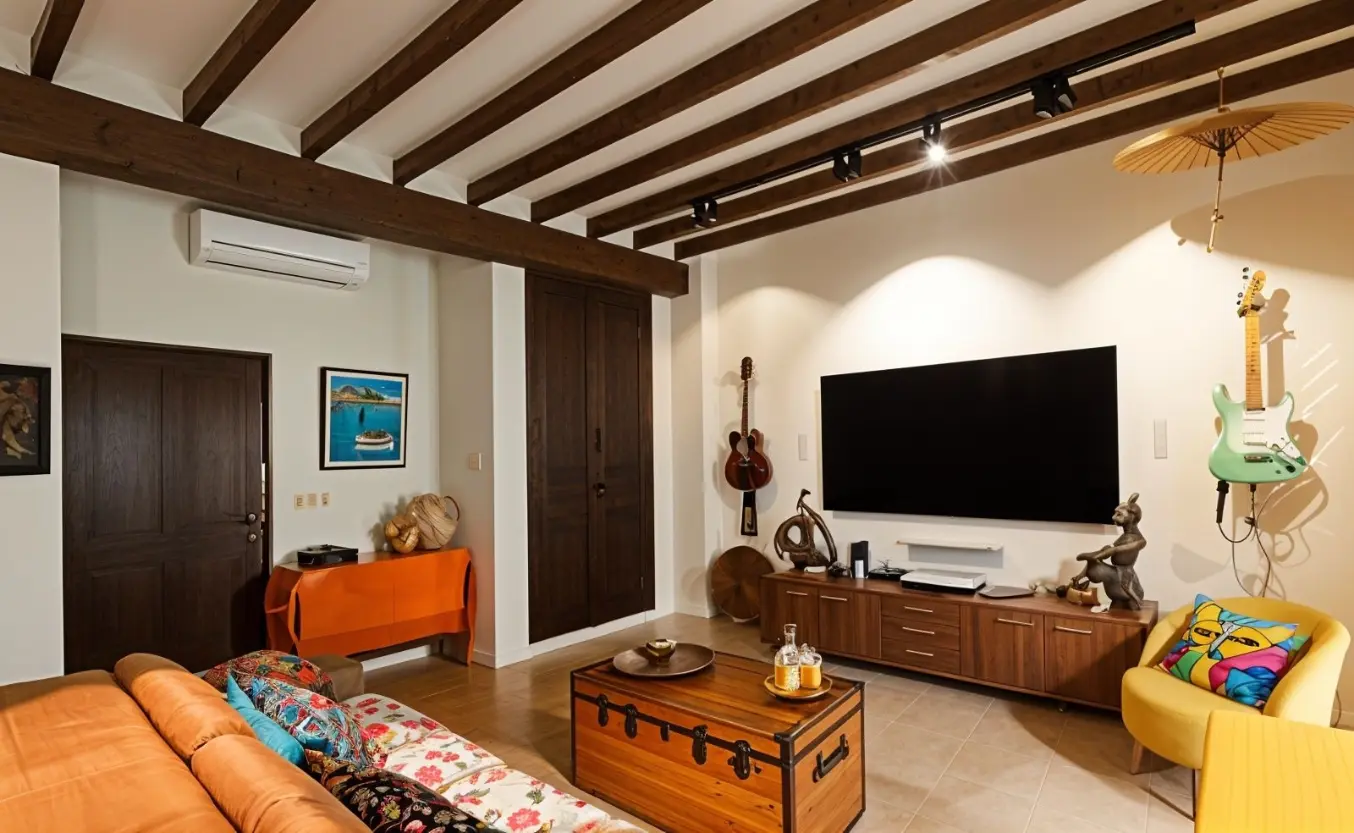 - Primera planta: Dedicada al descanso y el ocio, alberga tres dormitorios, uno de ellos convertido en sala de cine, ideal para ratos de entretenimiento exclusivo. Se complementa con un baño completo.