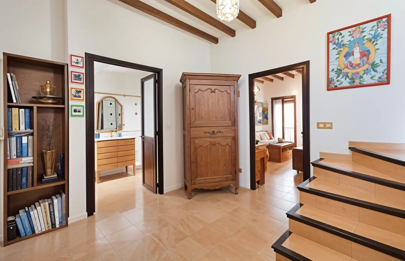 - Santuario principal: La segunda planta es un refugio privado. El espacioso dormitorio principal cuenta con un lujoso baño en suite, un vestidor tipo boutique y acceso directo a una soleada terraza privada orientada al sur, su rincón perfecto para el café matutino.