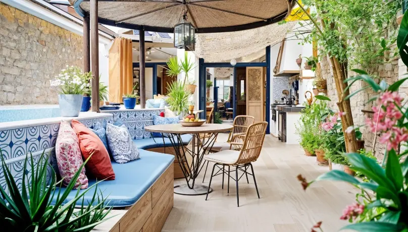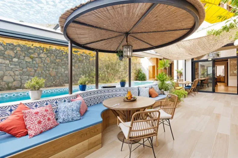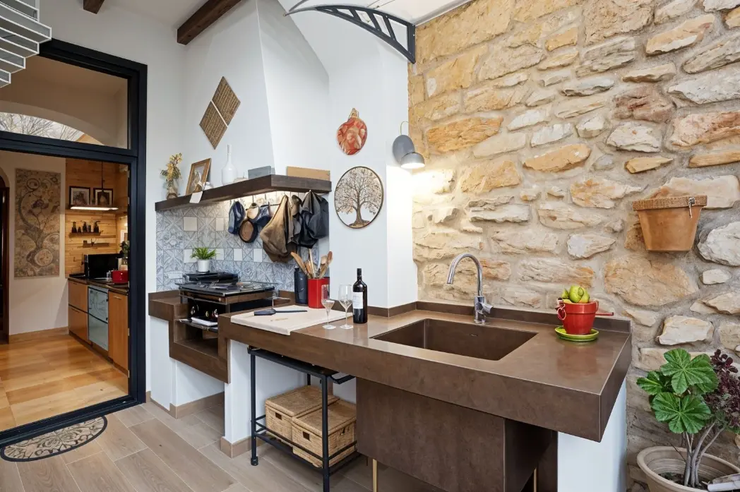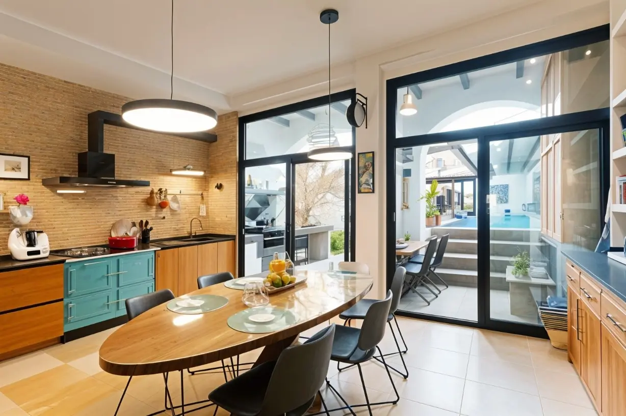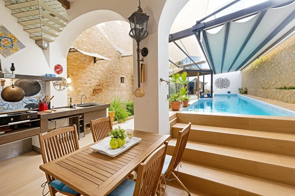- Cocina exterior & jardín: El patio incluye una cocina exterior totalmente equipada y una zona de barbacoa, ideal para celebrar eventos familiares sin mantenimiento gracias a su jardín de diseño.