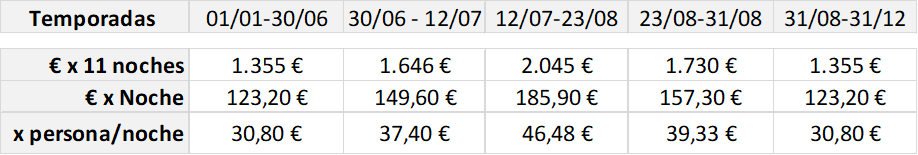 A partir del 1 de enero 2026 Estancias de 14 o más noches (5% descuento del 12/07 al 23/08. Resto temporadas 10%)