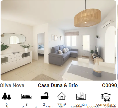 La casa se encuentra en la exclusiva urbanización de Oliva Nova, rodeada de un paisaje impresionante entre playa, montañas, naranjos y el azul del mar. Situada a 6 km. de la ciudad de Oliva, a 15 km. de Gandía y a 20 km. de Denia. Está perfectamente comunicada por la autopista AP7, el AVE en Valencia a unos 45 minutos y los aeropuertos de Alicante y Valencia.