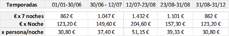 A partir del 1 de enero 2026 Estancias de 14 o más noches (5% descuento del 12/07 al 23/08. Resto temporadas 10%)