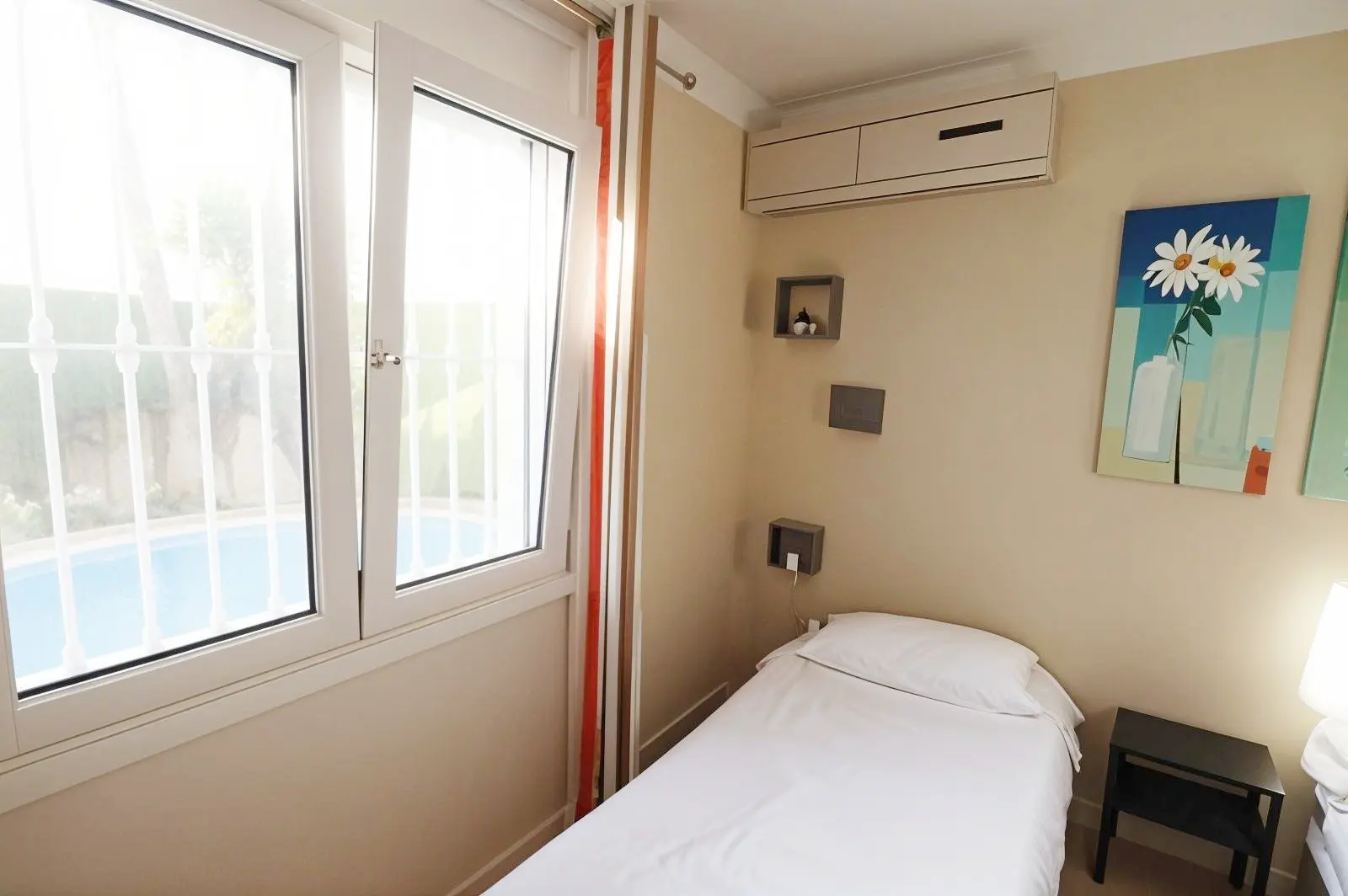 En los dormitorios encontrarás las camas preparadas con sábanas y toallas de mano y ducha, para cada persona y por estancia.