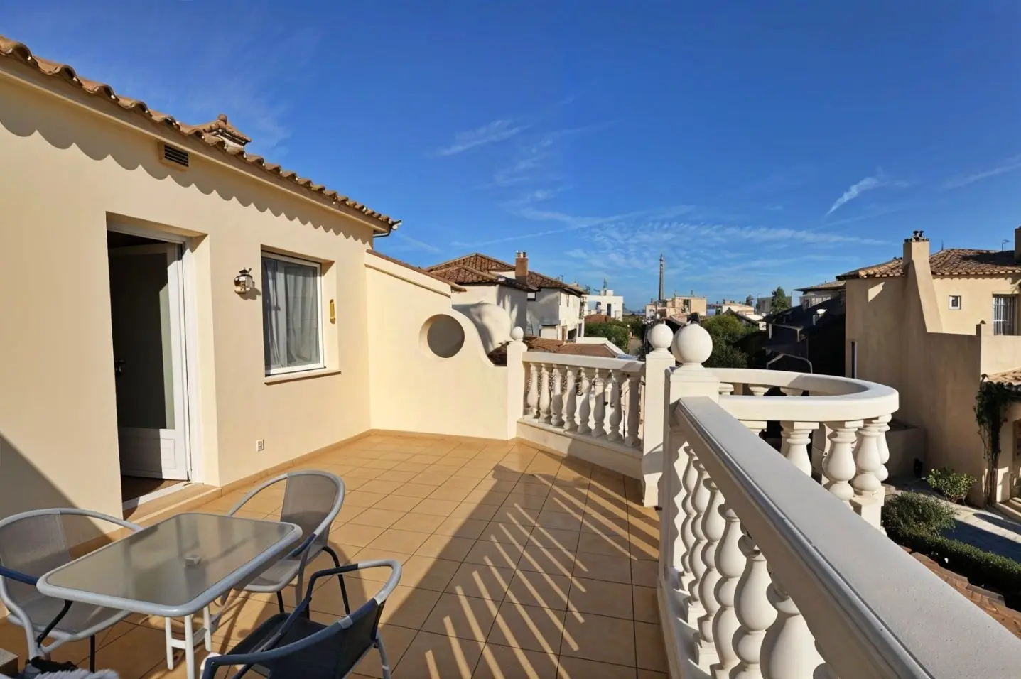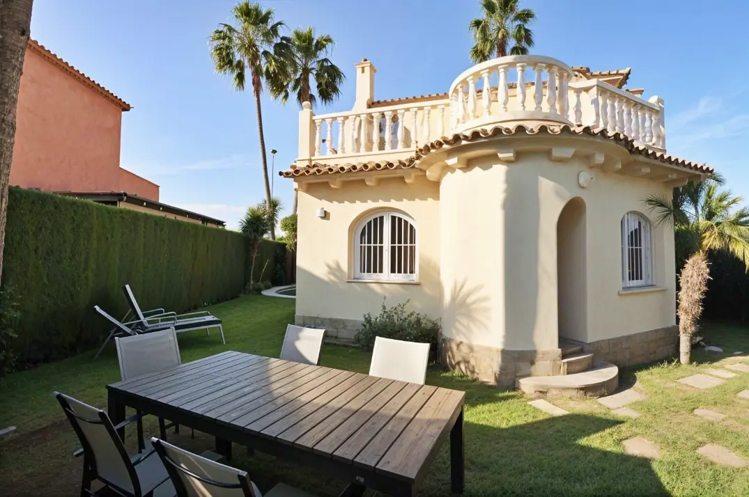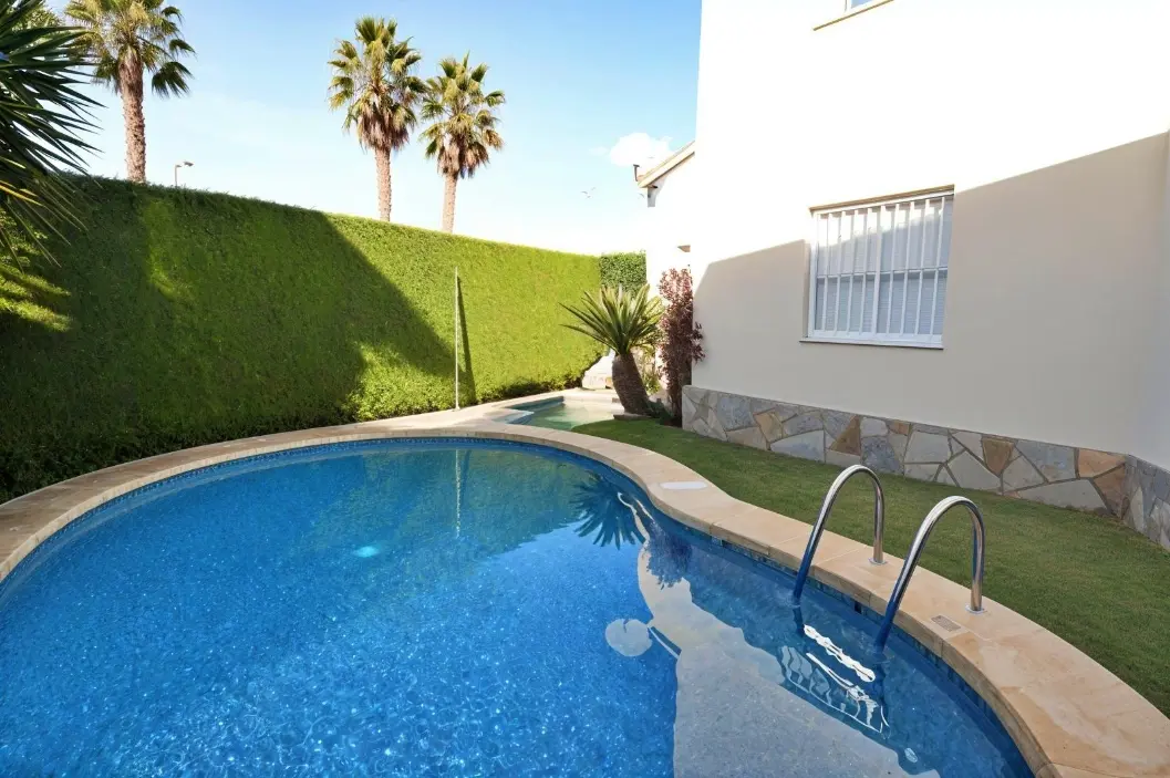 Espectacular Villa independiente con piscina y jardín privados en la Avda. Picasso de Oliva Nova. Superficie construida de 128 m2 en una parcela de 322 m2. Año de construcción 2001. Dos plantas, reformada. Muy buen estado de conservación. A tan solo 750 metros de la playa y 700 metros del Campo de Gorlf.