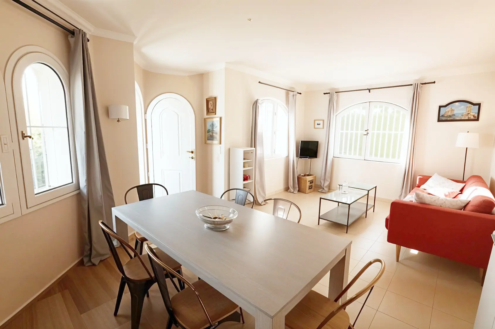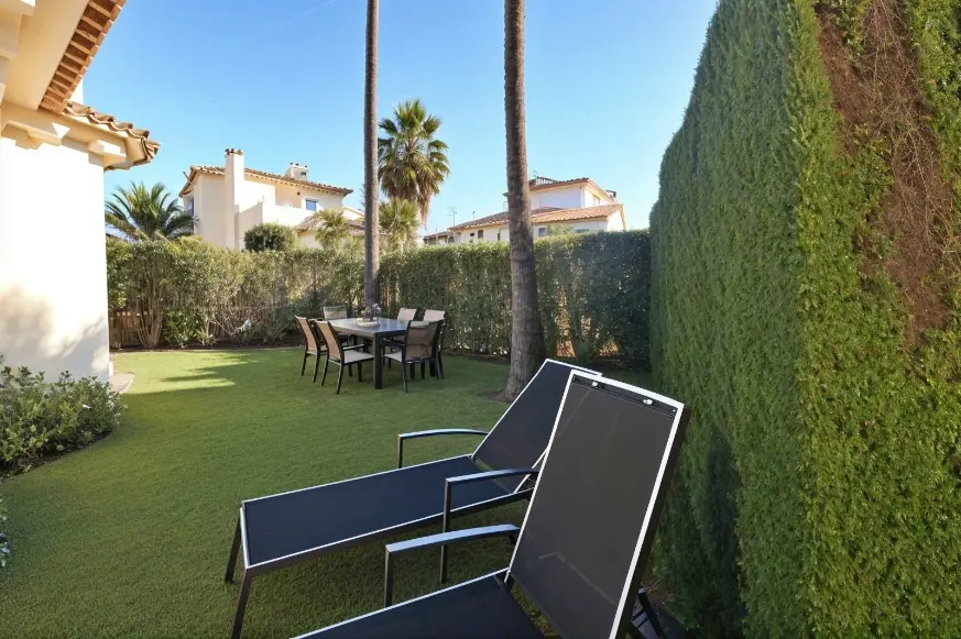- Salón con salida a una terraza privada con acceso directo a los jardines y piscina.