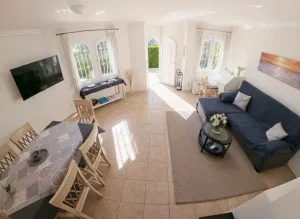 • Azotea: Espacio abierto de 28 m2., con vistas panorámicas a Oliva Nova, perfecto para relajarte o disfrutar del atardecer.