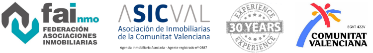 Formamos parte de la Federación de Asociaciones Inmobiliarias y de la Asociación de Inmobiliarias de la Comunidad Valenciana. Agente Inmobiliario Registrado en la Comunidad Valenciana Nº 0387. Empresa Gestora de Apartamentos Turísticos Nº 422V